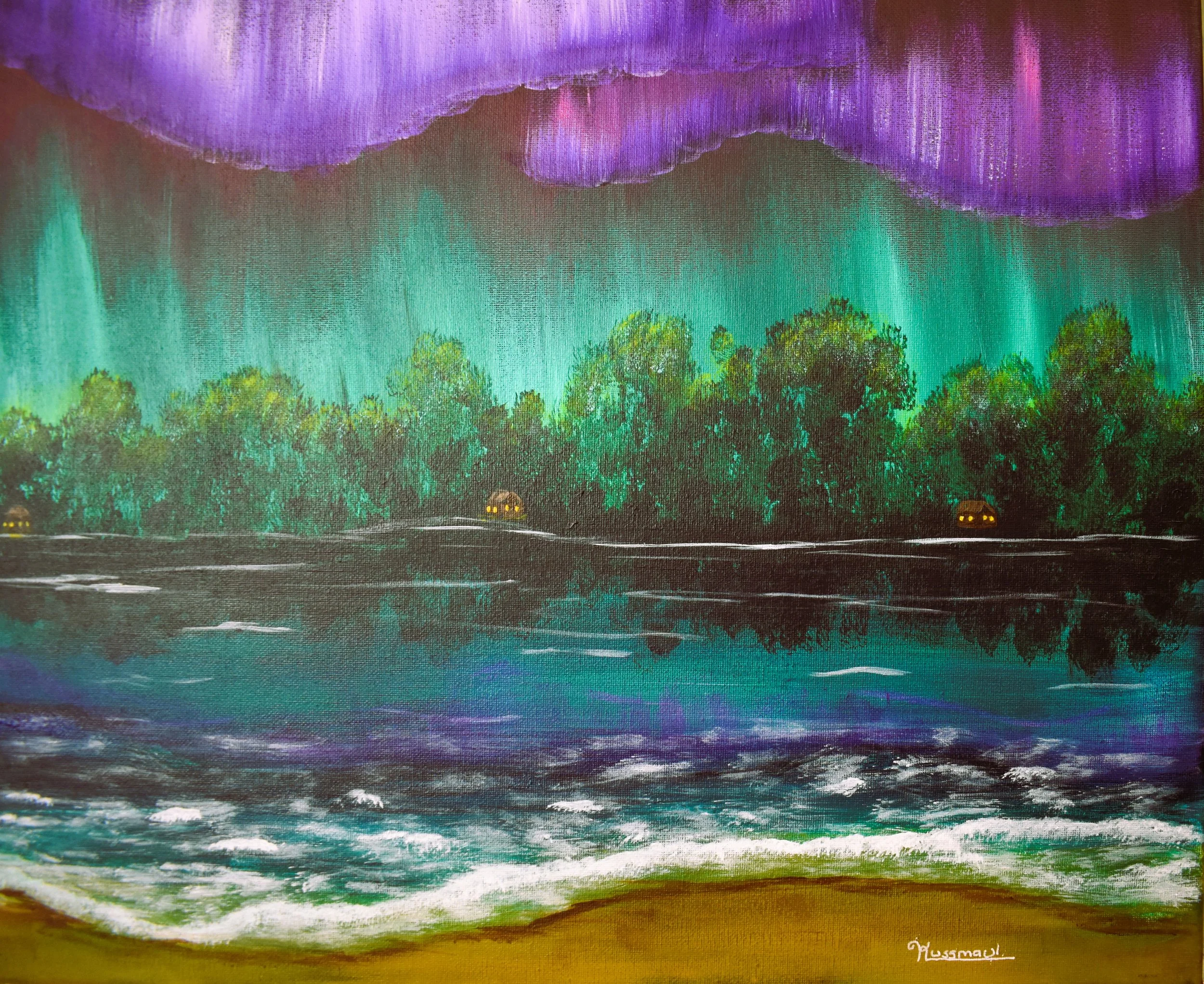 Ocean Aurora, 2025, acrylic, stretched canvas, 16" by 20" by 1/2" inch