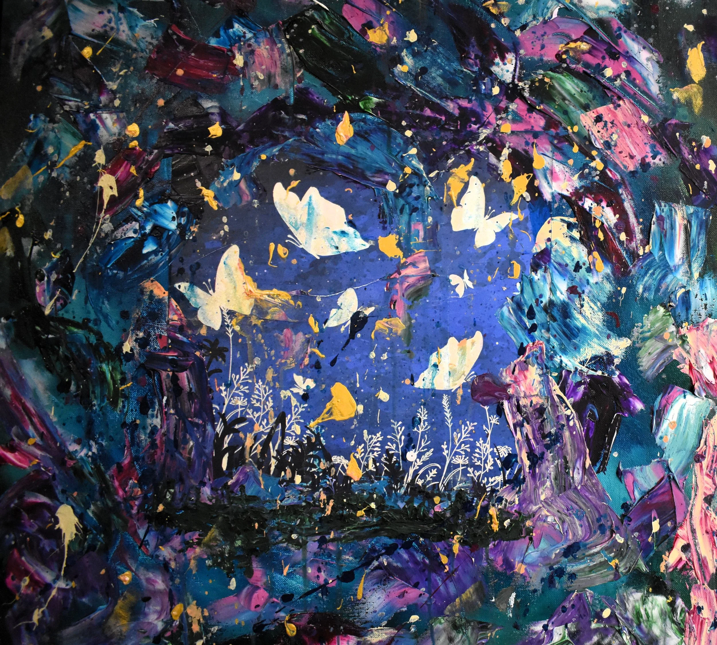 Fairy Glade, 2025, mixed media, wrapped canvas, 24" by 24" by 1" inch