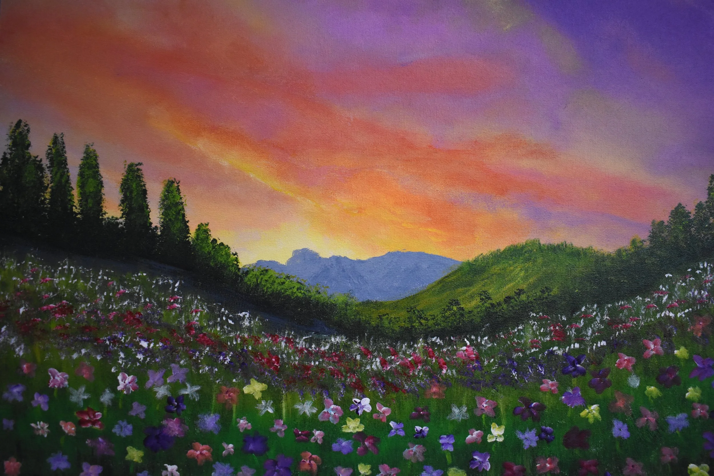 Field of Flowers, 2025, acrylic, wrapped canvas, 16" by 20" by 1/2" inch