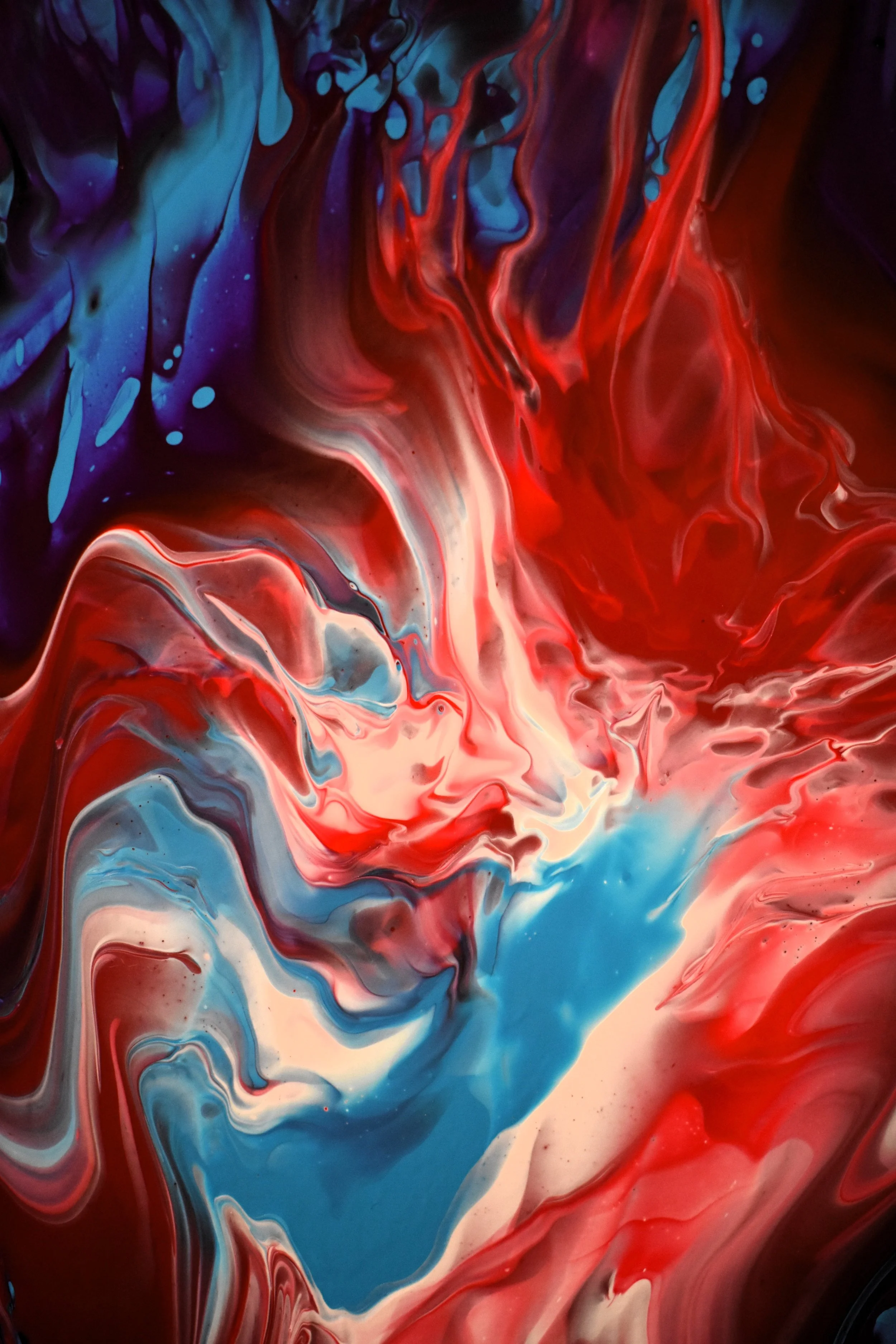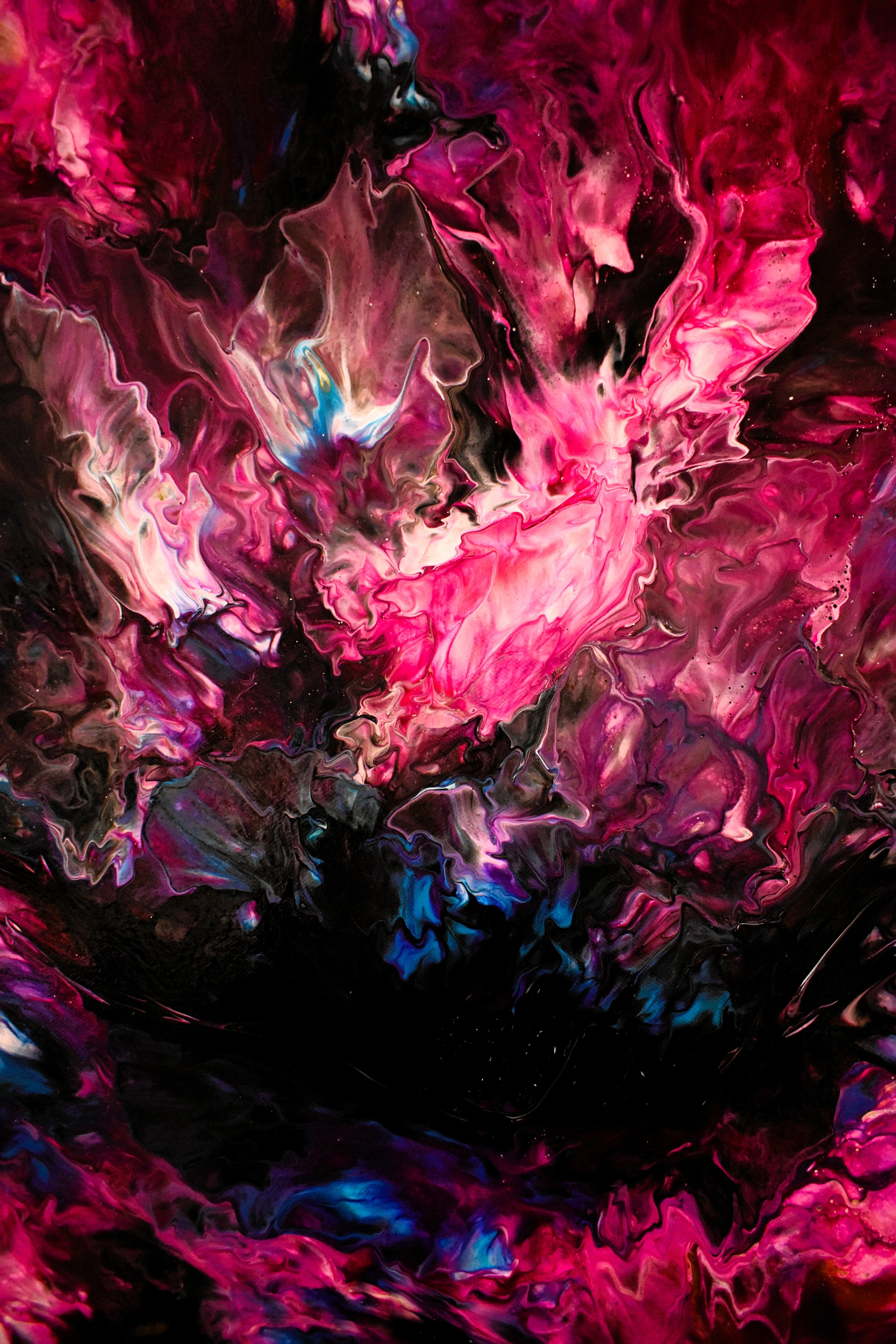 Depths of Fire, 2025, acrylic pour, stretched canvas, 16" by 20" 1/2" inch