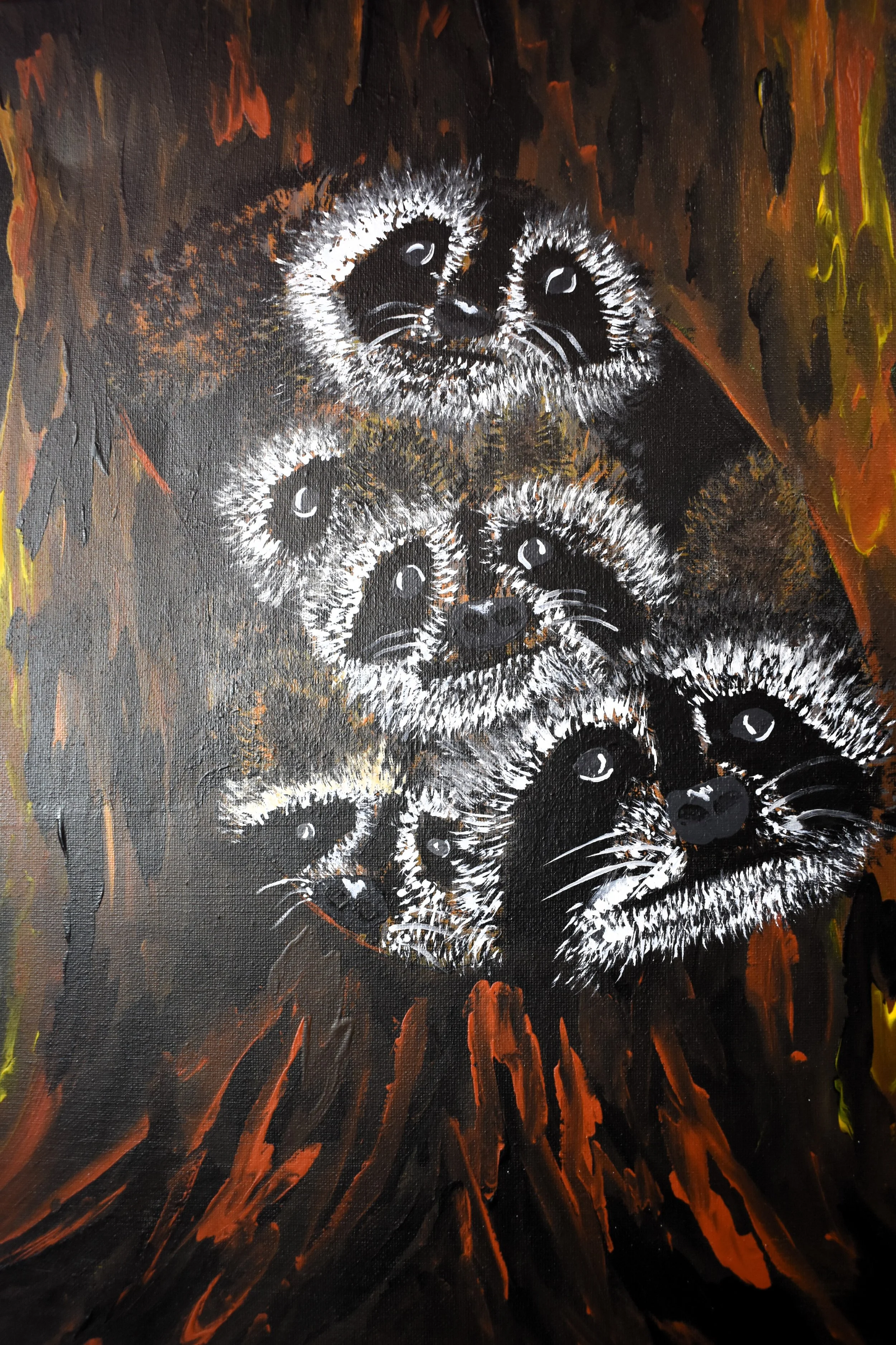 Racoons, 2023, acrylic, stretched canvas, 16" by 20" by 1/2" inch