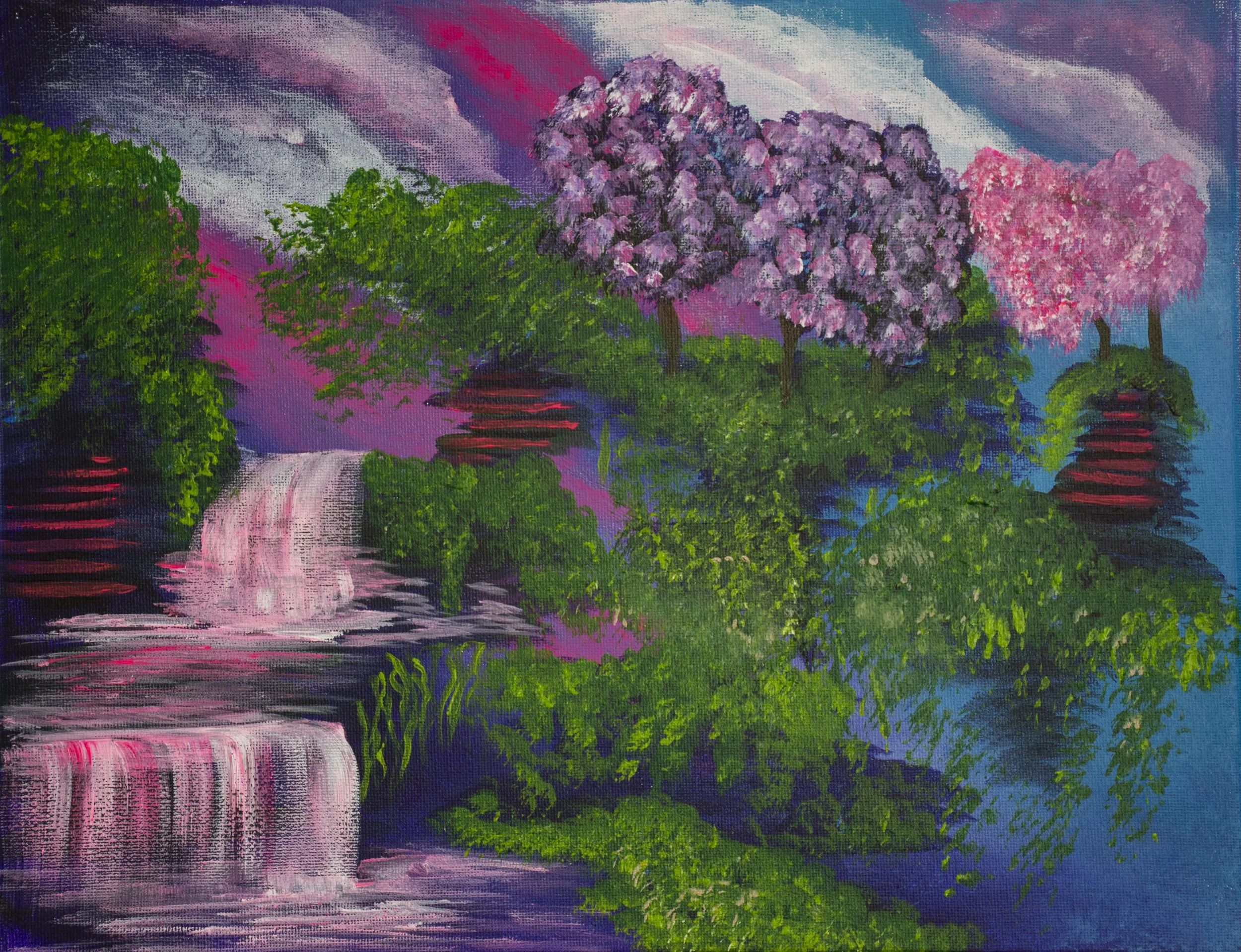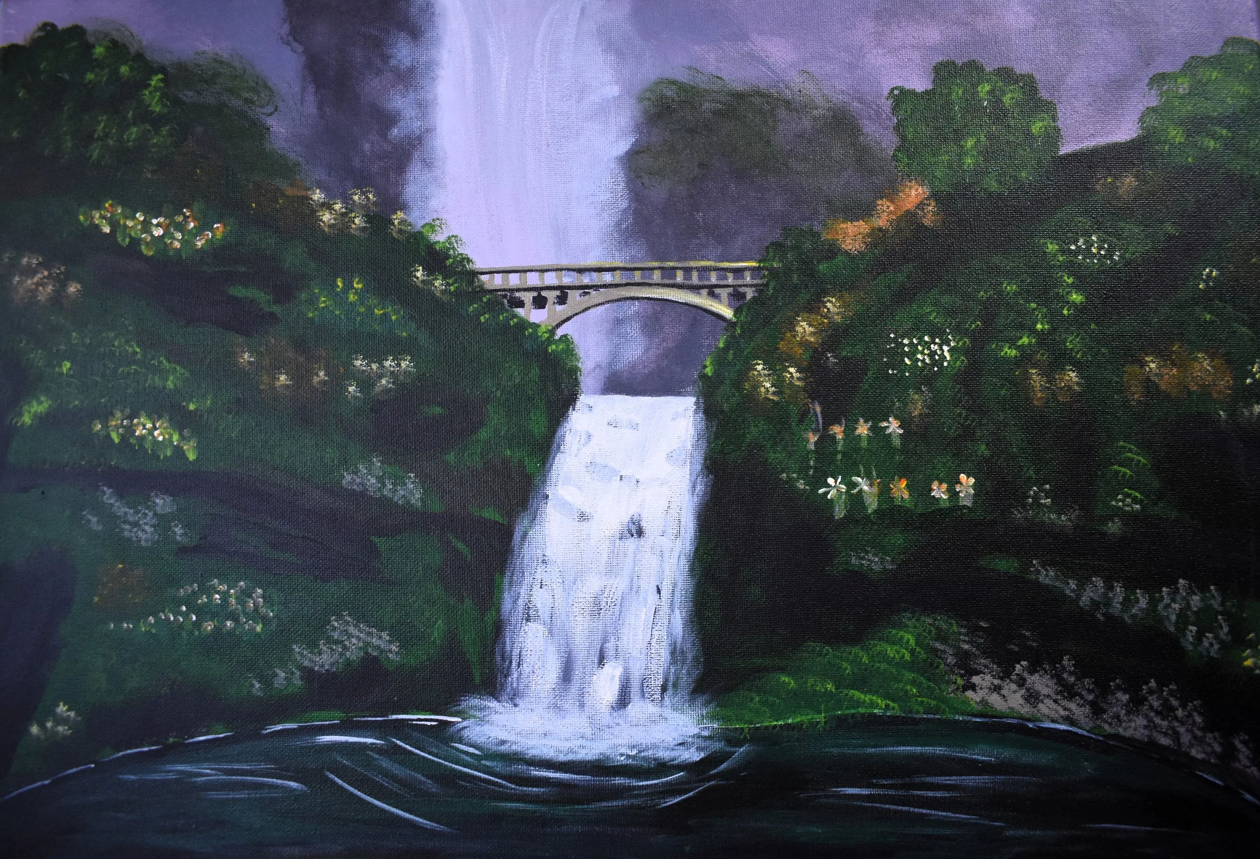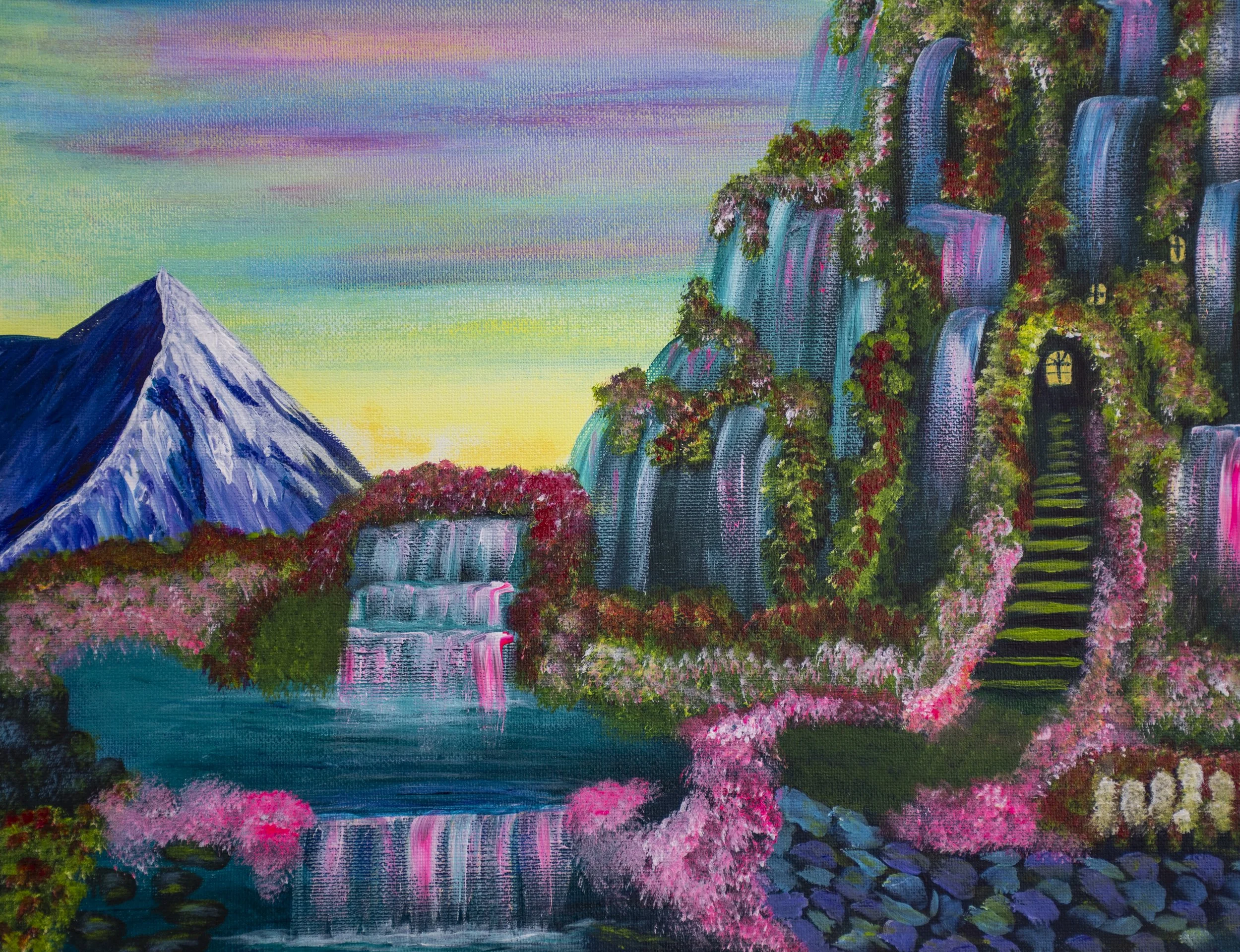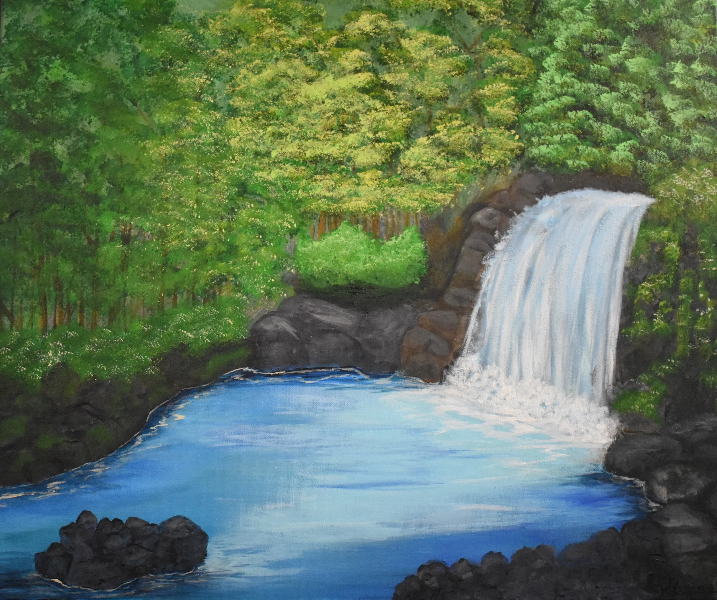 Mountain Waterfall, 2023, acrylic, stretched canvas, 16" by 20" by 1/2" inch