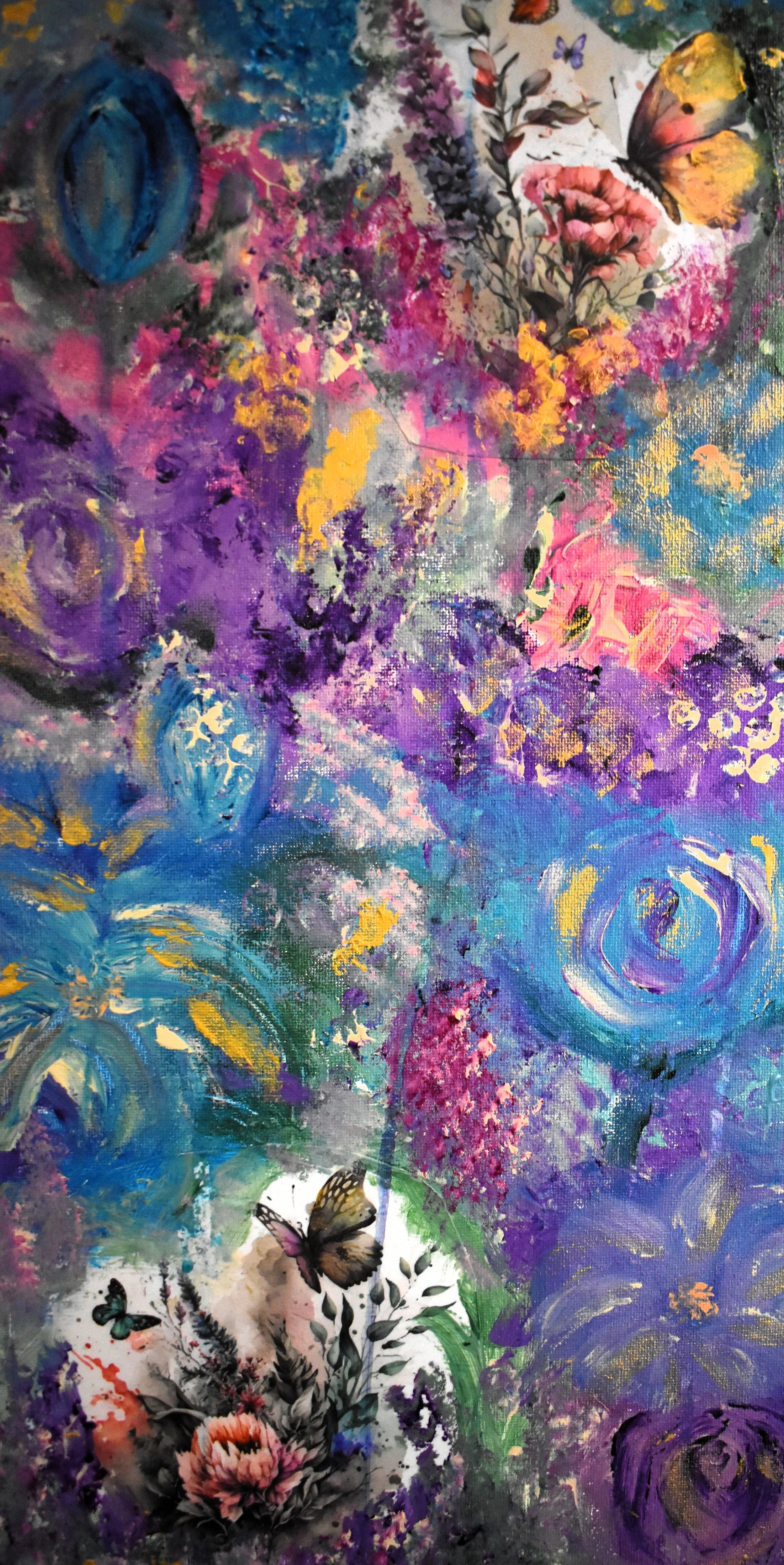 Butterfly Whispers, 2025, mixed media, stretched canvas, 10" by 20" by 1/2" inch