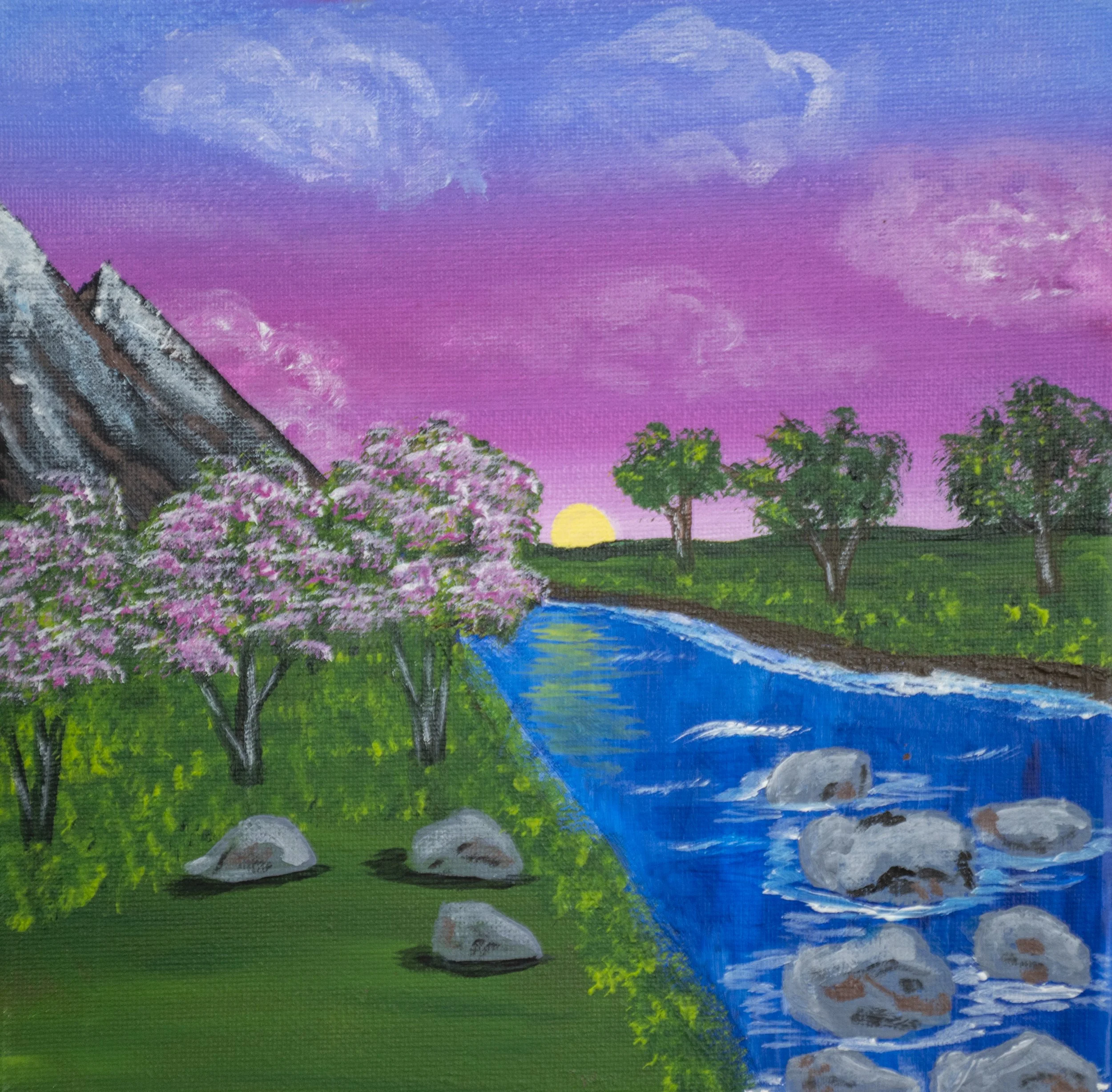 Dreamy River, 2025, acrylic, stretched canvas, 16" by 20" by 1/2" inch