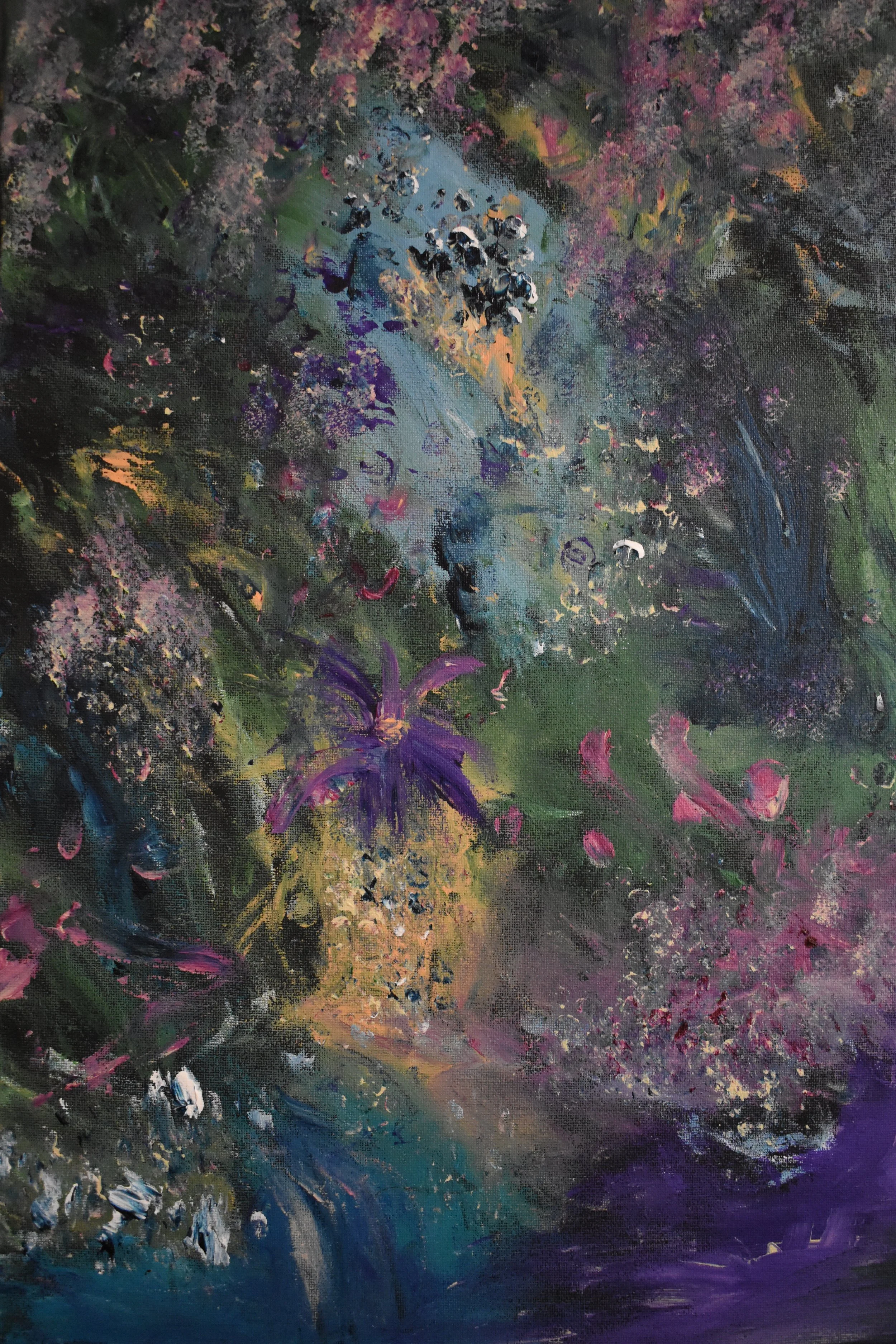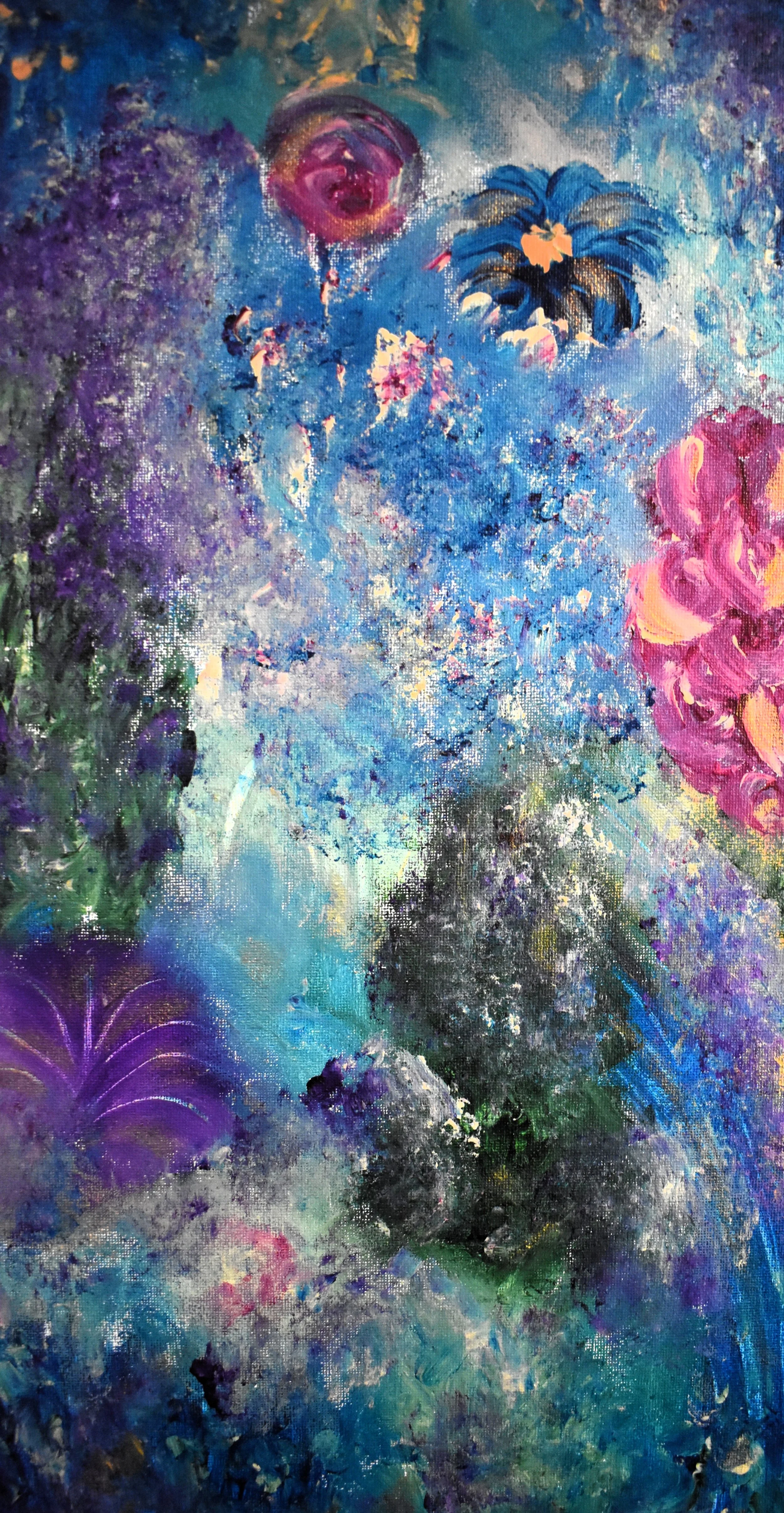 Blossom Whispers, 2025, acrylic, stretched canvas, 16" by 20" by 1/2" inch