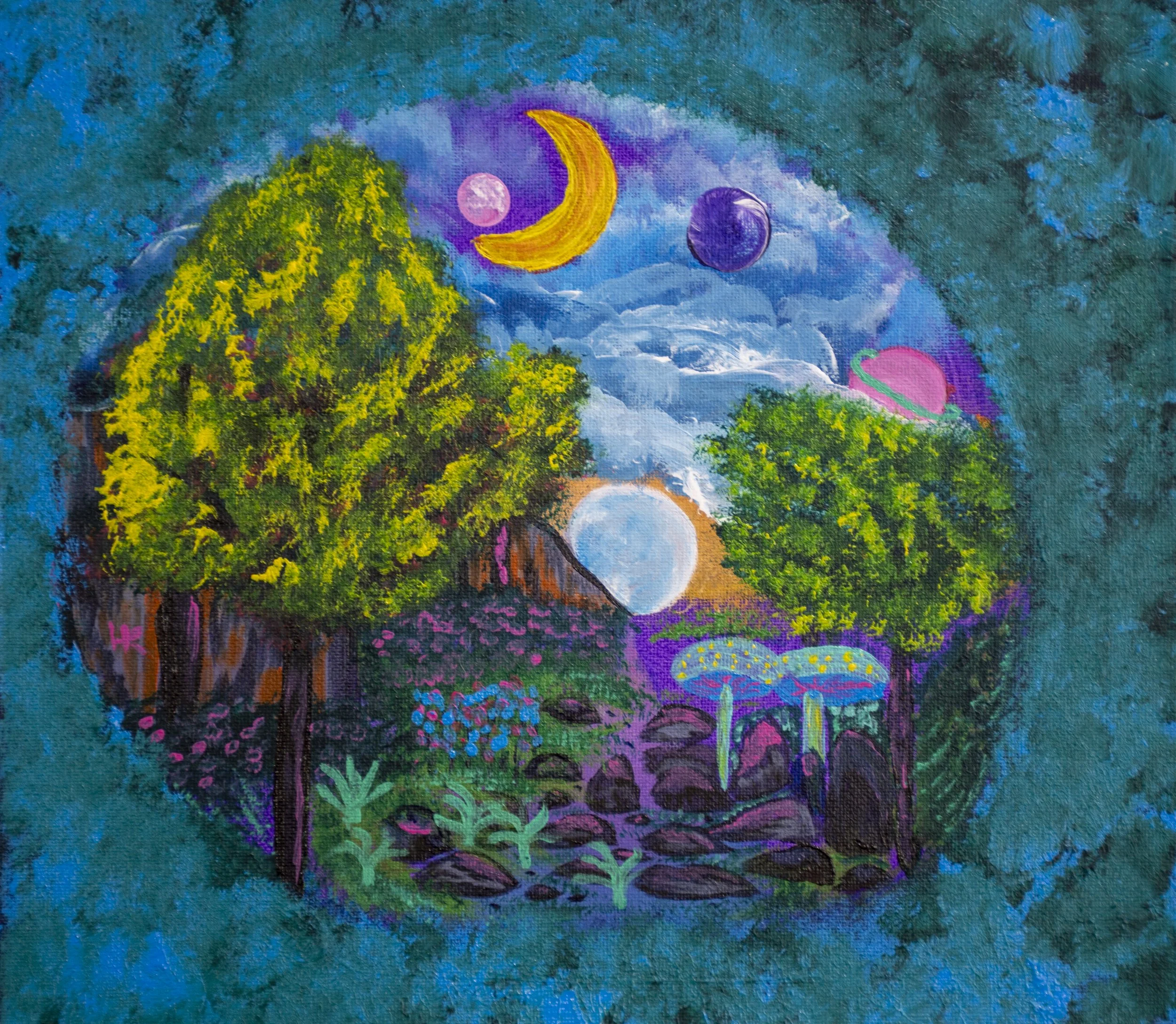 Hidden World, 2023, acrylic, panel board, 8" by 10" inch