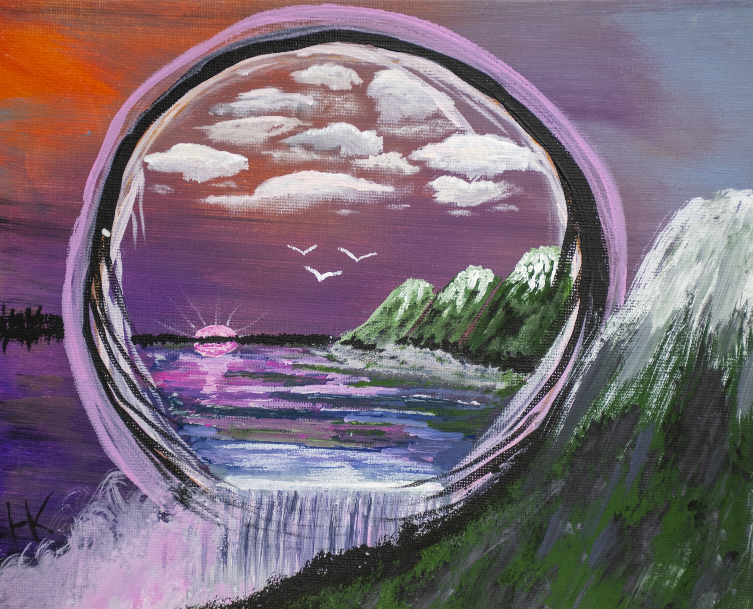 Floating World, 2023, acrylic, stretched canvas, 8" by 10" by 1/2" inch