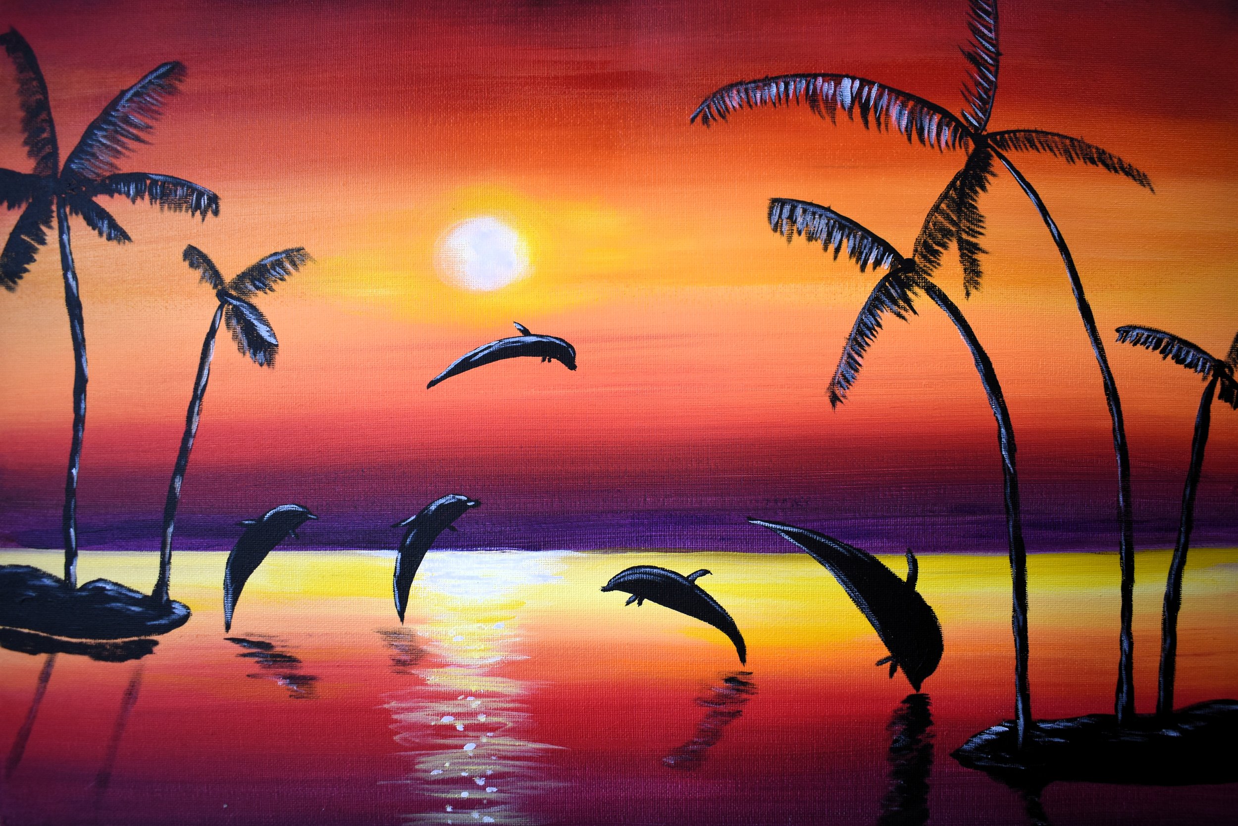 Daybreak Dolphins, 2024, acrylic, wrapped canvas - 11" by 14"by 1/2" inch