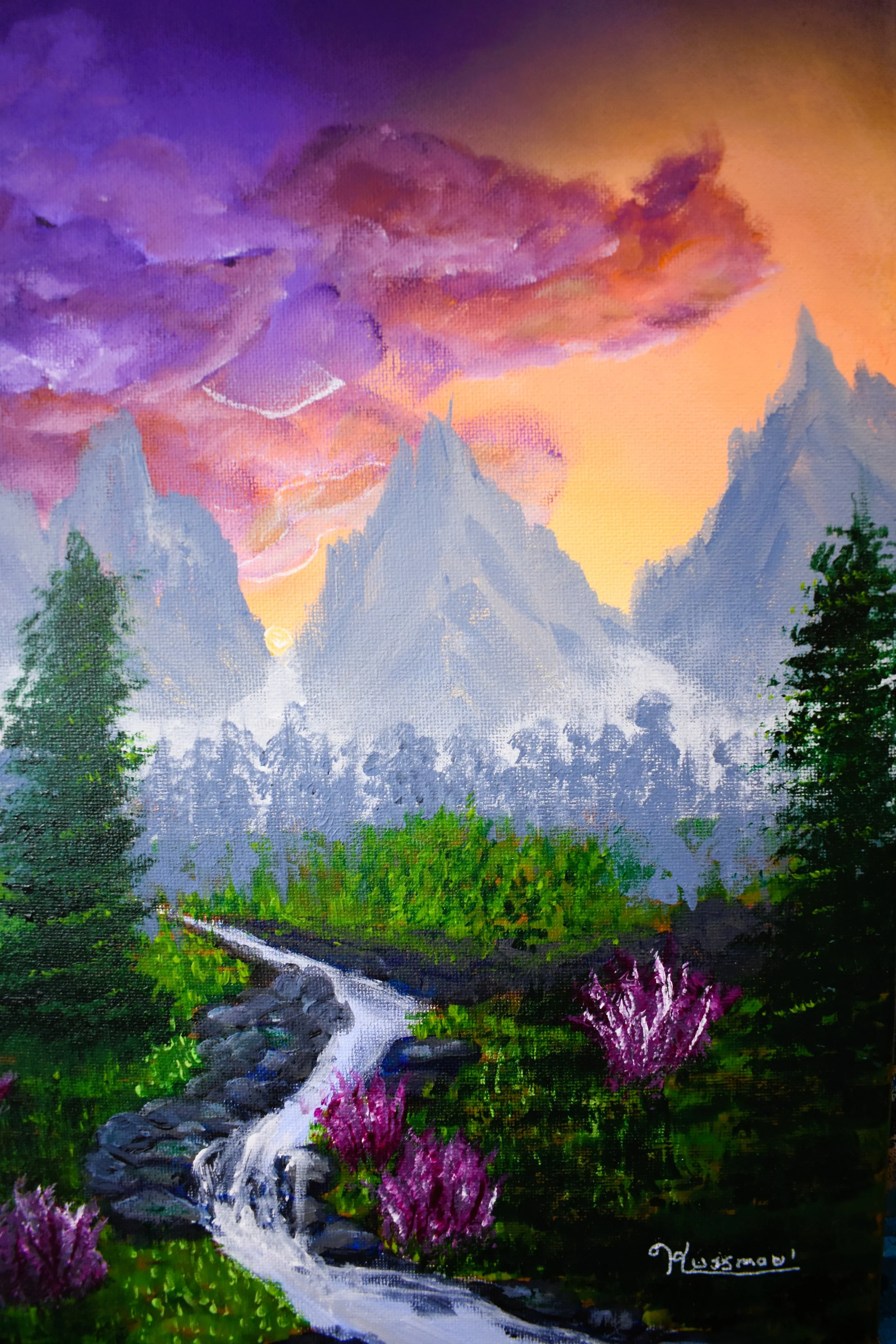 Mountain Sunset, 2025, acrylic, stretched canvas, 16" by 20" by 1/2" inch